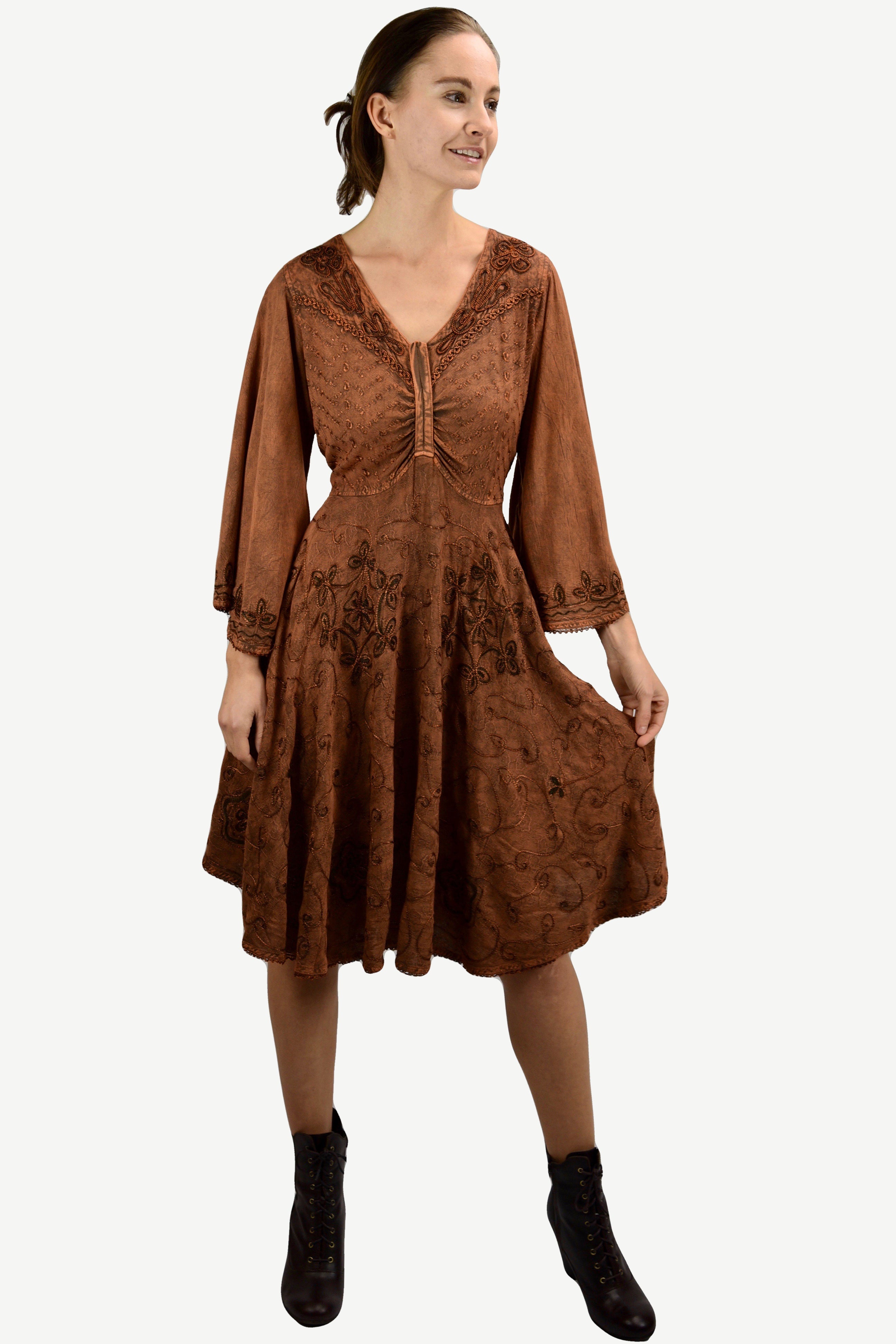117 Dr Butterfly Embroidered Bell Sleeve Flare Knee Length Dress Agan Traders
